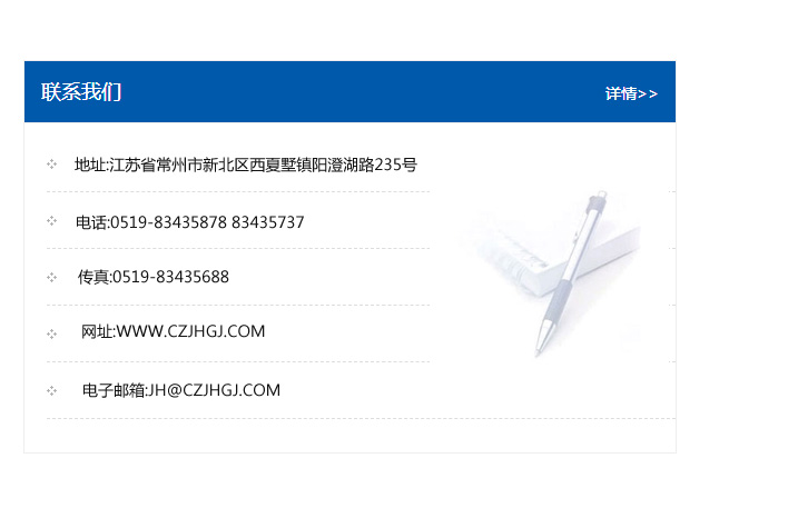 傳真:0519-83435688    郵編:213135    網址:WWW.czjhgj_com.shjsbl.com    電子郵箱:JH@czjhgj_com.shjsbl.com